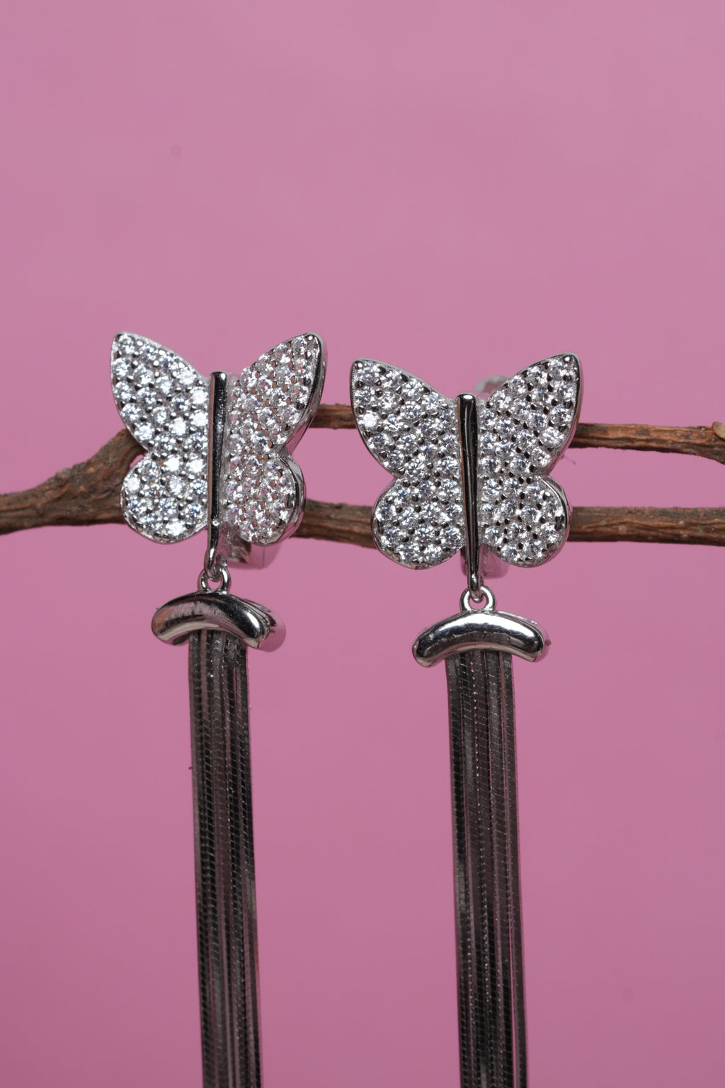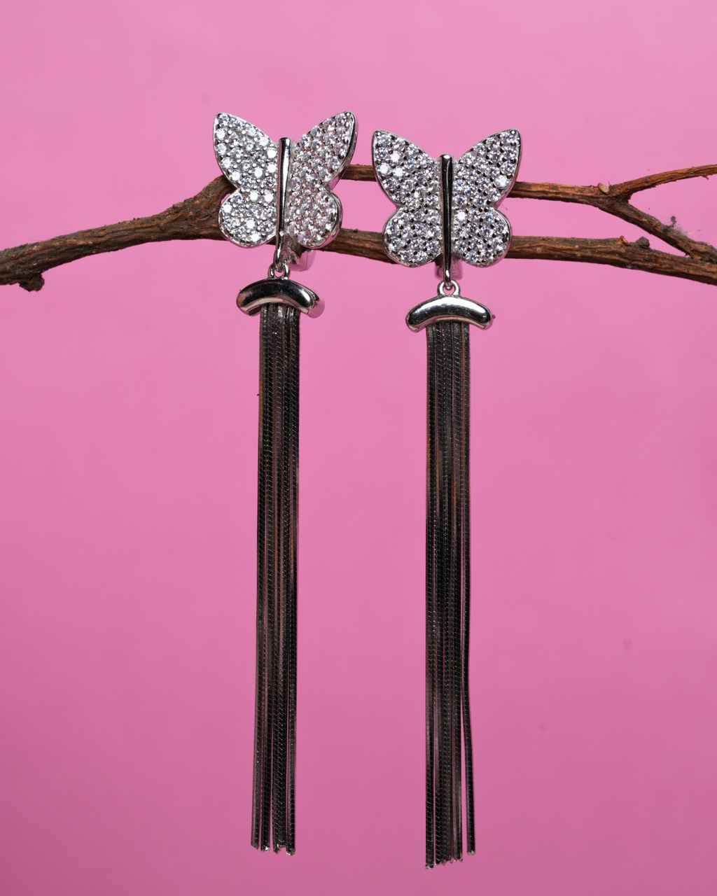 A dazzling statement earring featuring a finely crafted butterfly stud accented with pavé-set crystals on the lower wing.