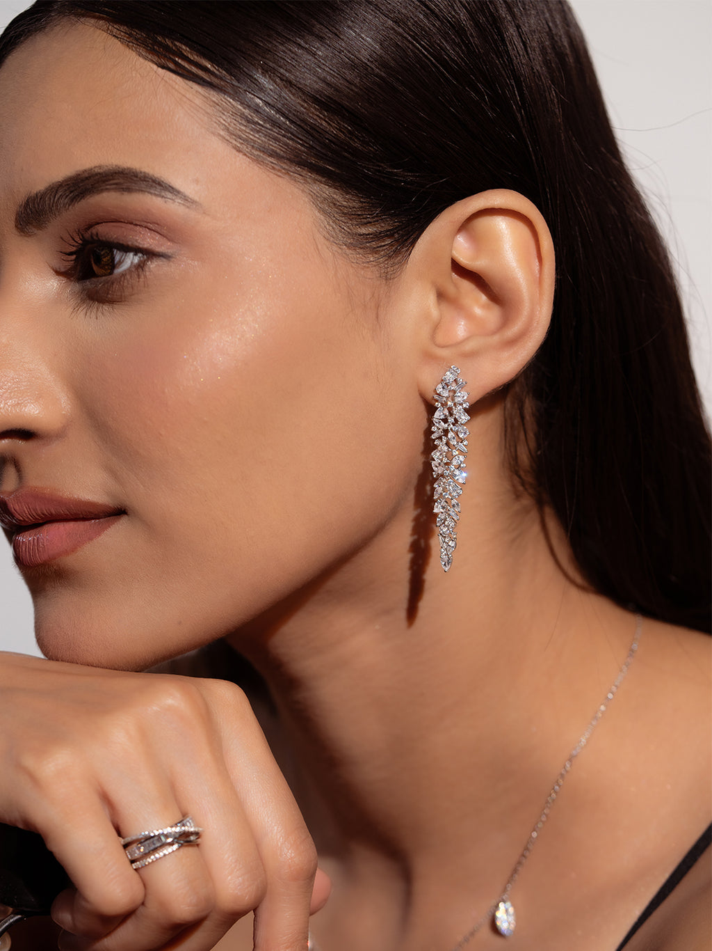 Dazzling Baguette & Marquise Crystal Cluster Drop Earrings