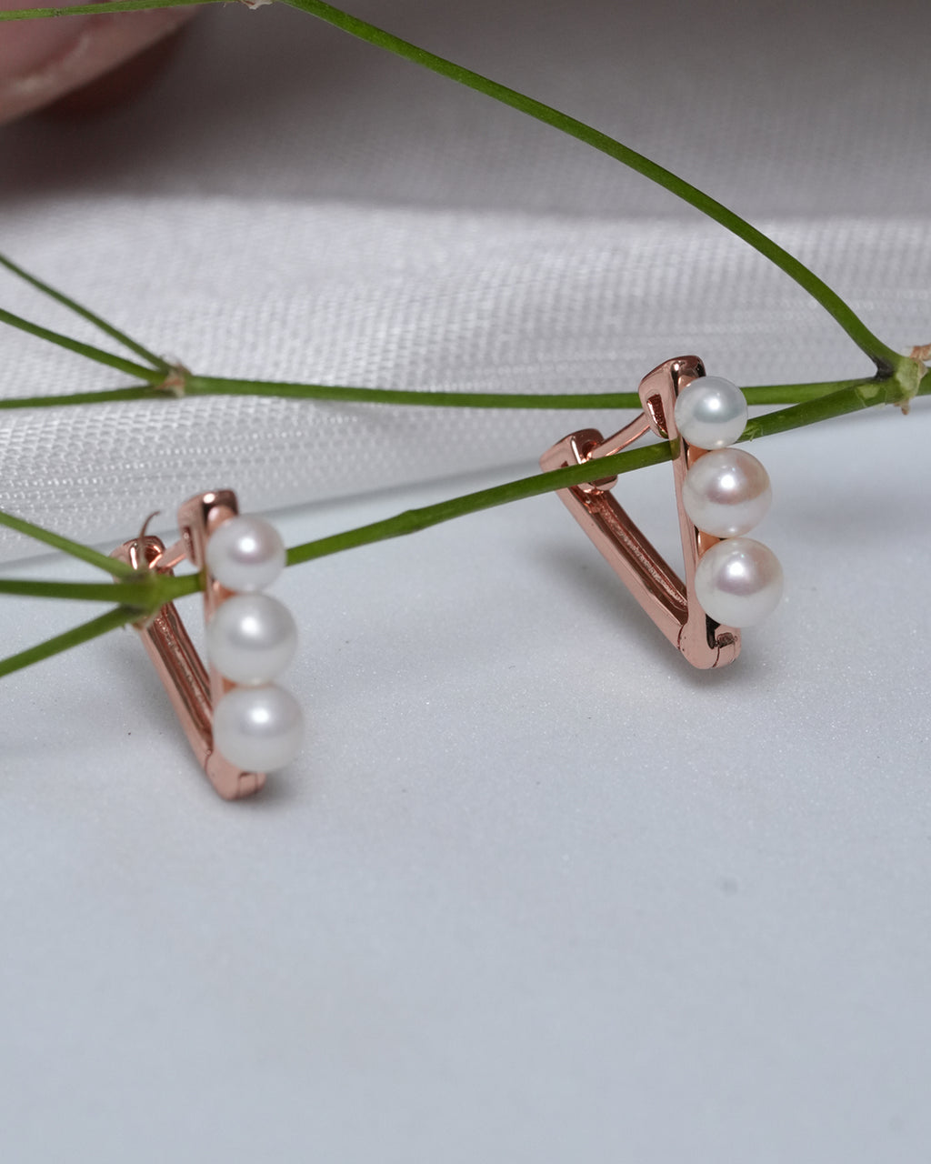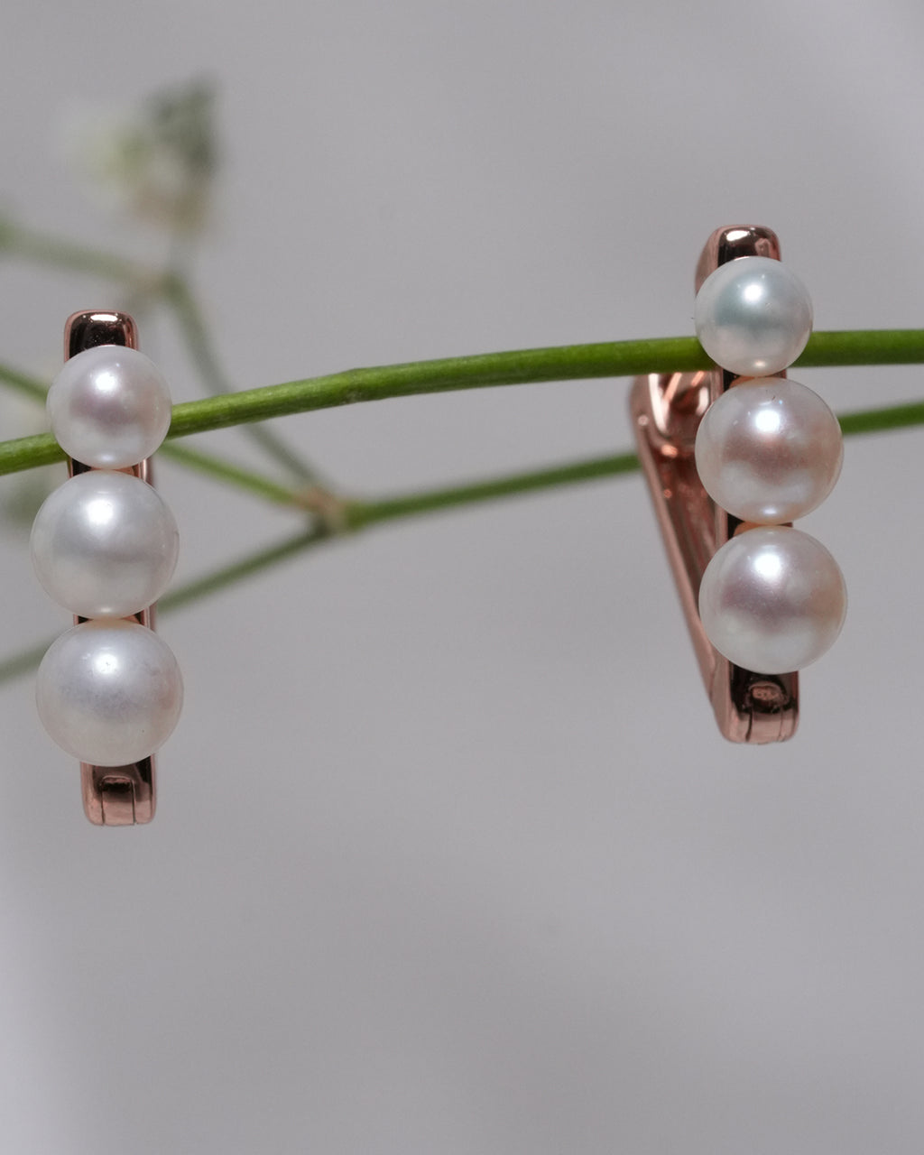The warm rose gold-tone finish beautifully complements the pearls’ soft, natural luster.