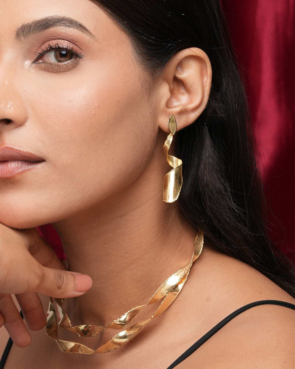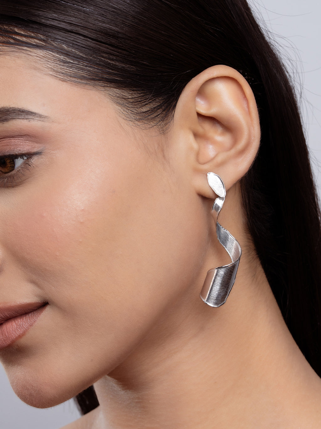 A striking sculptural earring designed with a distinctive twisted silhouette for an artistic, modern look.