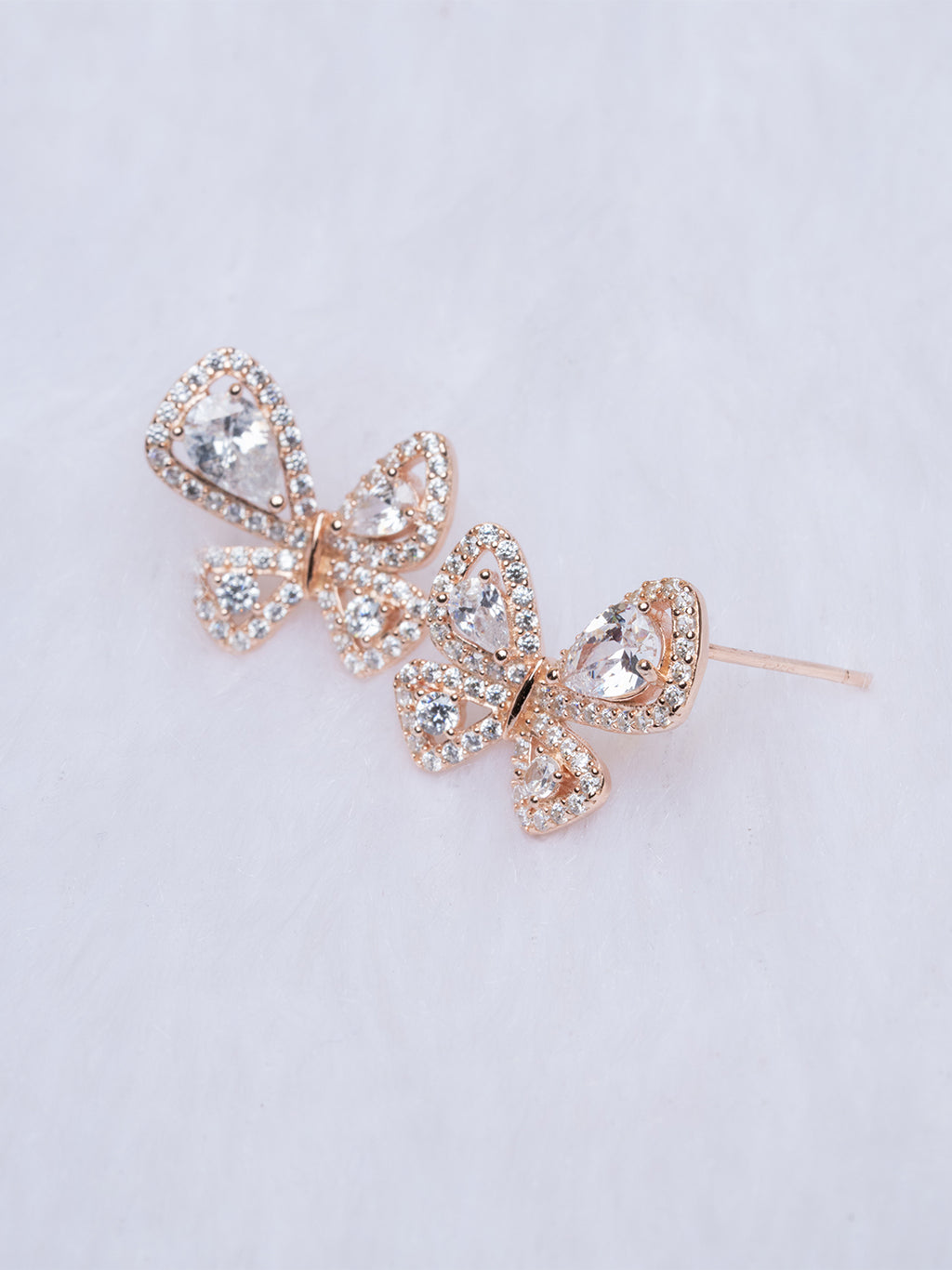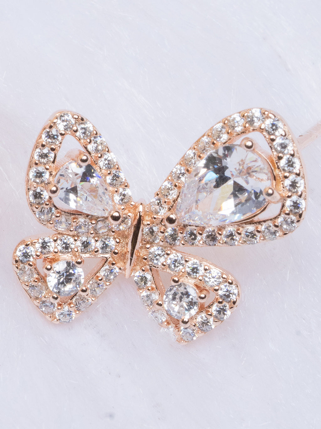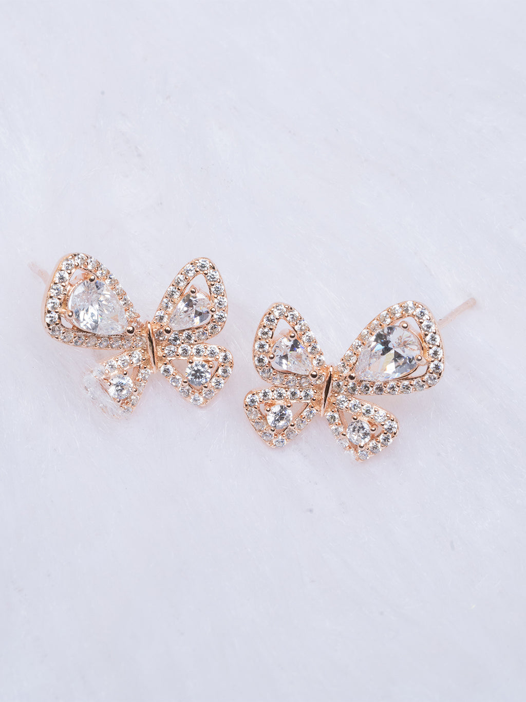 These earrings feature two delicate butterfly motifs linked for a subtle dangling effect. Finished in rose gold-tone and encrusted with sparkling stones, they offer a lightweight, elegant look. Free size.
