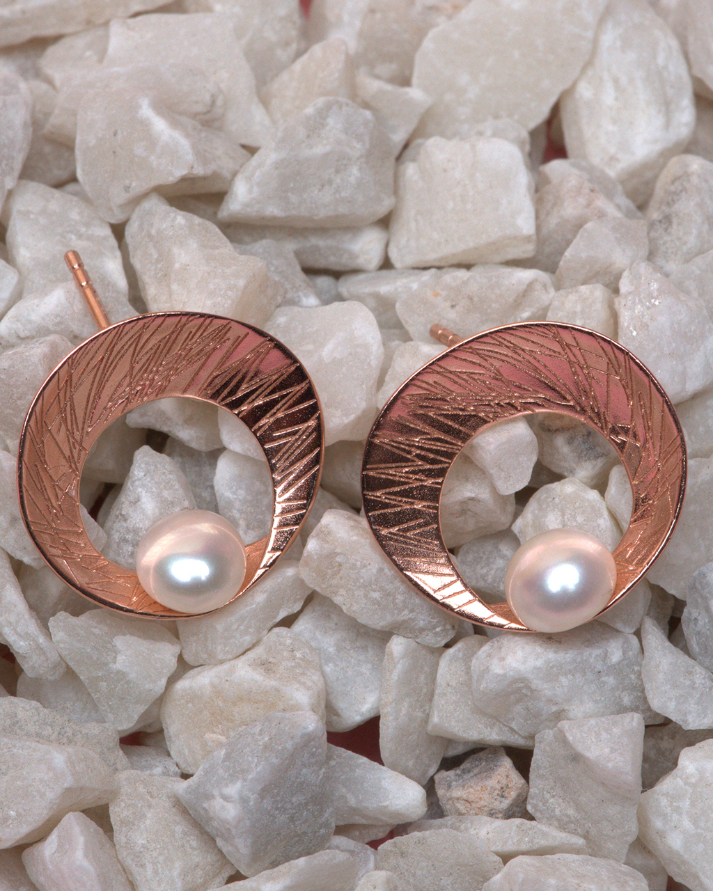 Delicately sculpted with a modern organic form, the Rose Dawn Pearl Studs blend soft elegance with contemporary charm. The rose gold–tone textured shell cradles a luminous pearl, creating a beautiful contrast of warmth and shine. Perfect for both everyday wear and refined occasions, these studs add a subtle statement to any look.