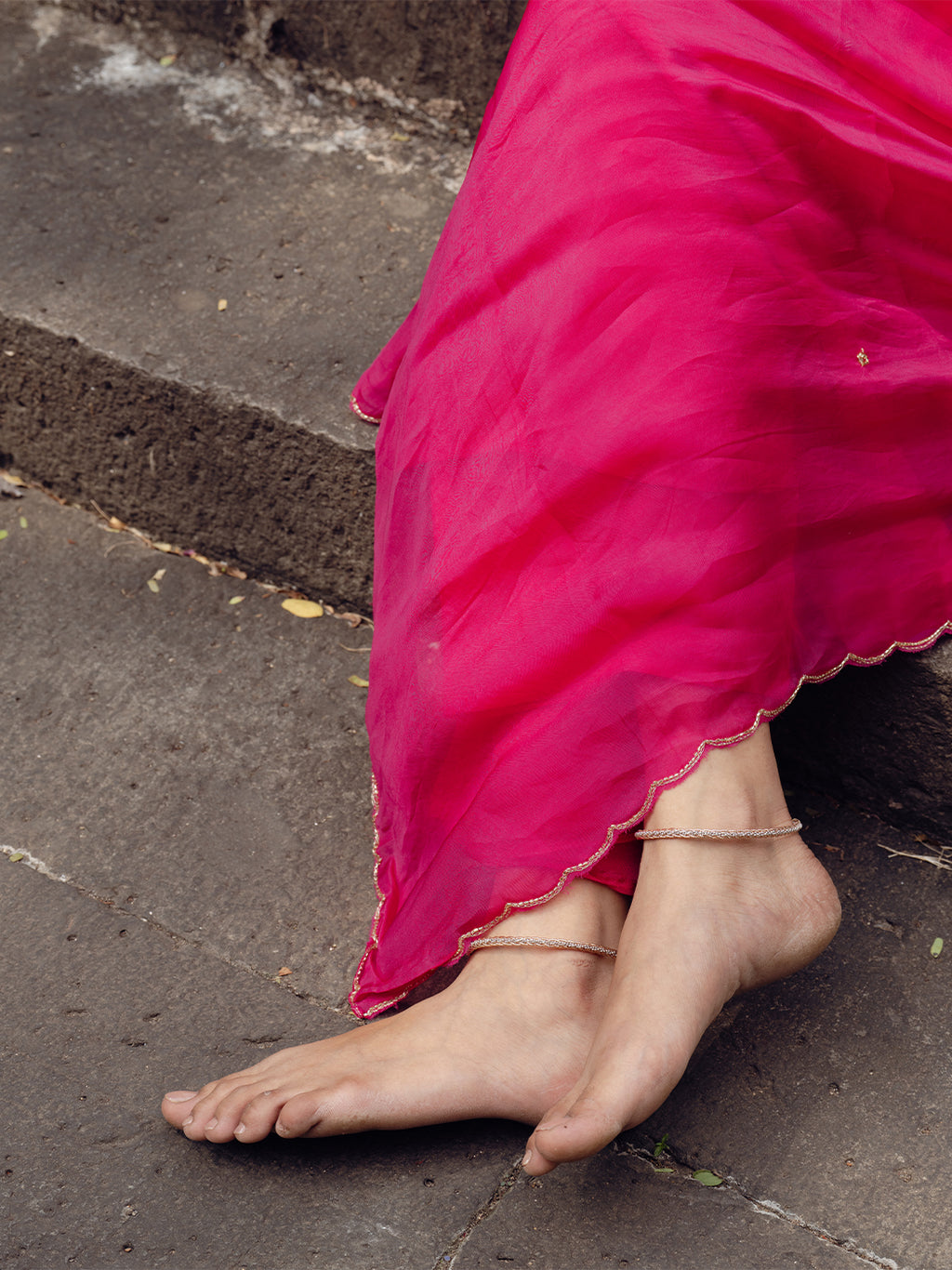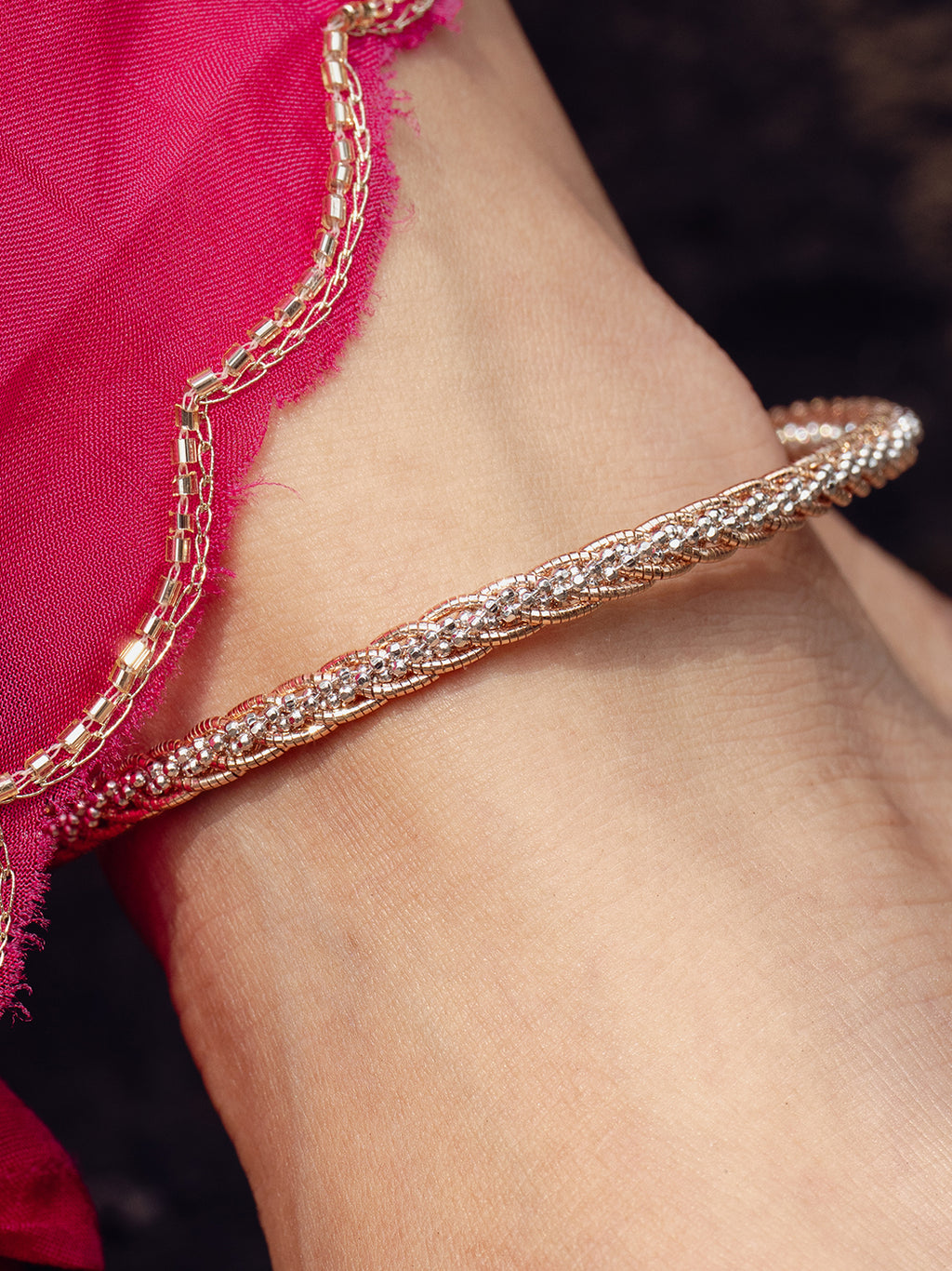 A minimalist two-layered anklet (Payal) featuring delicate textured chains in a warm gold tone. Designed for a subtle, elegant shimmer, it adds a refined touch to everyday or traditional wear.